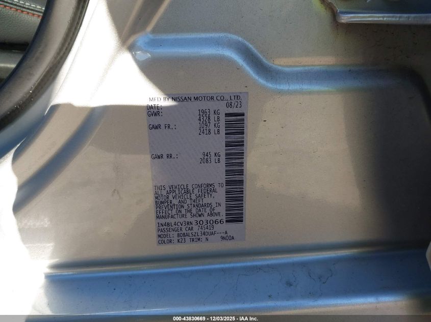 2024 NISSAN ALTIMA 2024 року Бензин, 2.5, Передний привод, vin - 1N4BL4CV3RN303066 из США