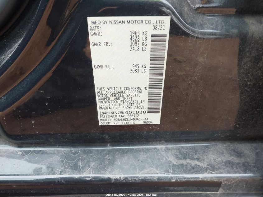 2021 NISSAN ALTIMA 2021 року Бензин, 2.5, Передний привод, vin - 1N4BL4DV2MN401030 из США