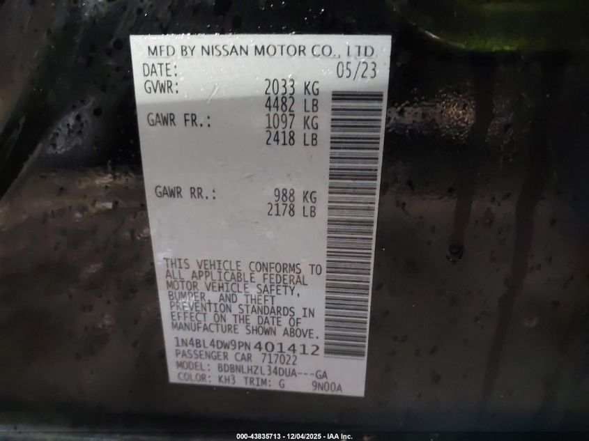 2023 NISSAN ALTIMA 2023 року Бензин, 2.5, Полный привод, vin - 1N4BL4DW9PN401412 из США