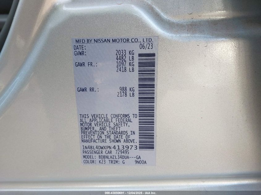 2023 NISSAN ALTIMA 2023 року Бензин, 2.5, Полный привод, vin - 1N4BL4DWXPN413973 из США