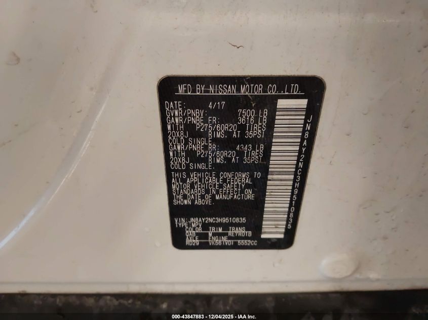 2017 NISSAN ARMADA 2017 року Бензин, 5.6, Полный привод, vin - JN8AY2NC3H9510835 из США