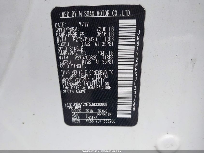 2018 NISSAN ARMADA 2018 року Бензин, 5.6, , vin - JN8AY2NF5J9330868 из США