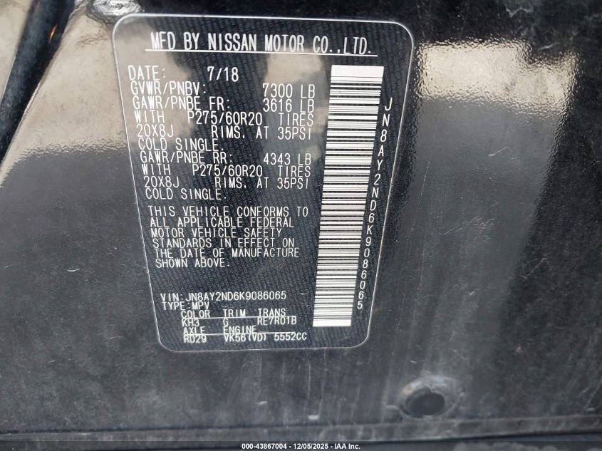 2019 NISSAN ARMADA 2019 року Бензин, 5.6, , vin - JN8AY2ND6K9086065 из США