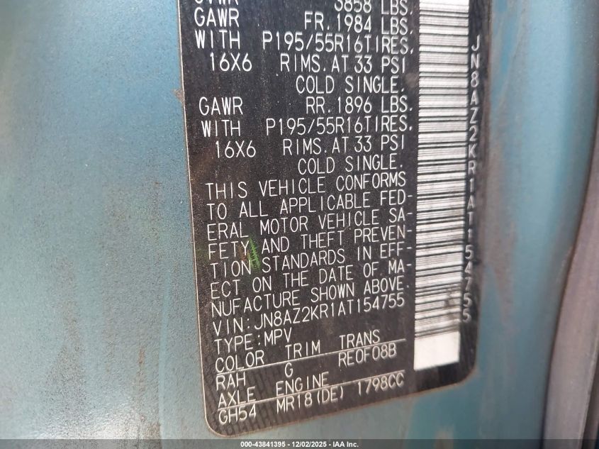2010 NISSAN CUBE 2010 року Бензин, 1.8, Передний привод, vin - JN8AZ2KR1AT154755 из США