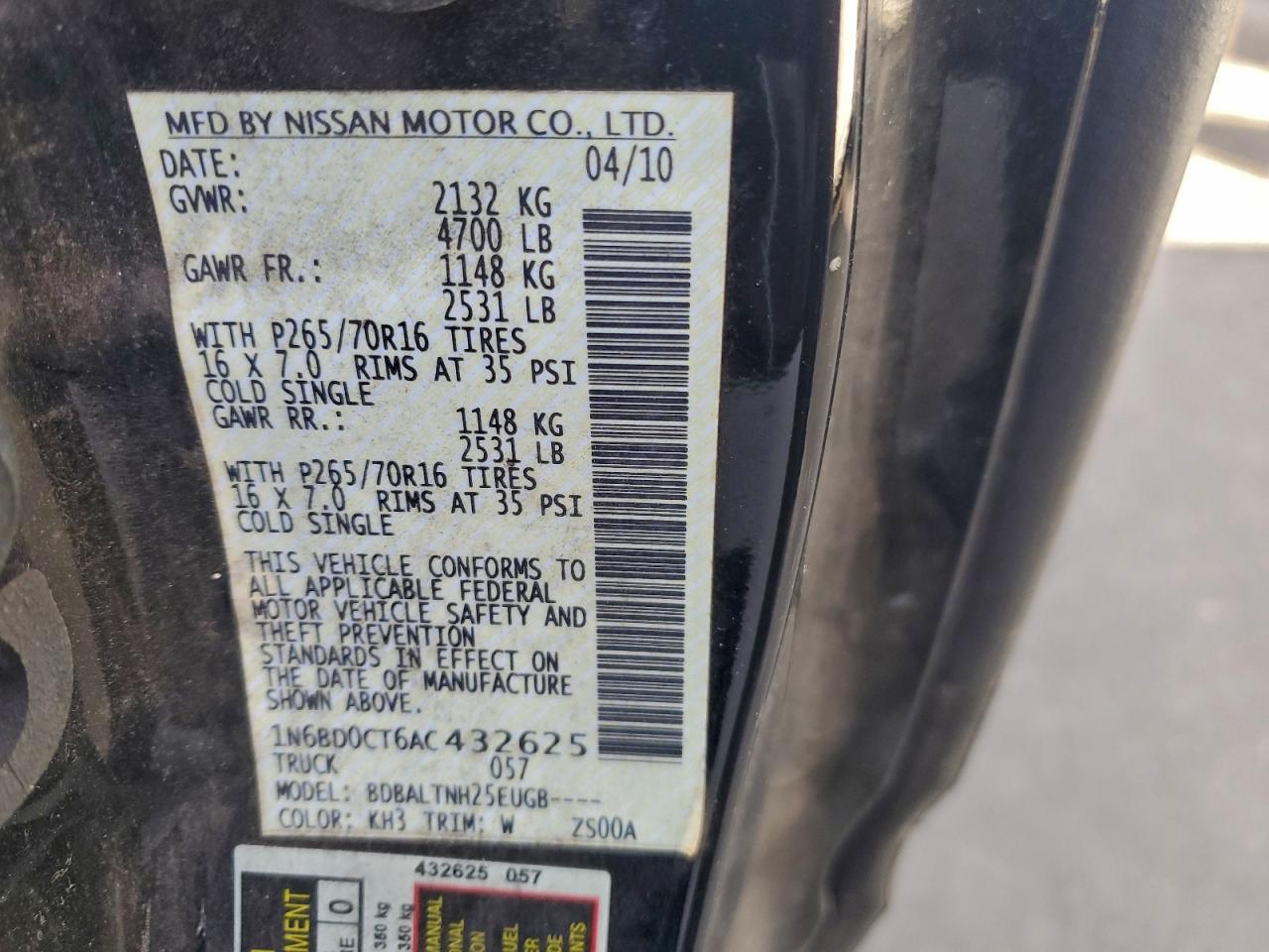 2010 NISSAN FRONTIER 2010 року Бензин, 2.5, Задний привод, vin - 1N6BD0CT6AC432625 из США