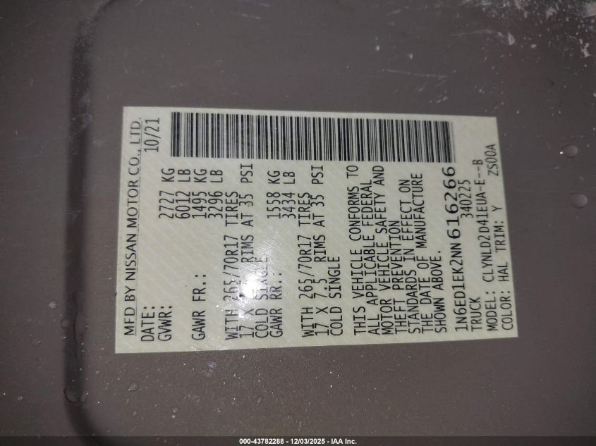 2022 NISSAN FRONTIER 2022 року Бензин, 3.8, Полный привод, vin - 1N6ED1EK2NN616266 из США