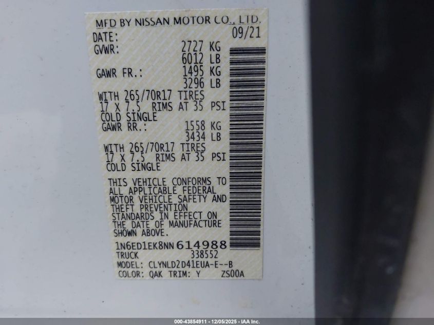 2022 NISSAN FRONTIER 2022 року Бензин, 3.8, Полный привод, vin - 1N6ED1EK8NN614988 из США