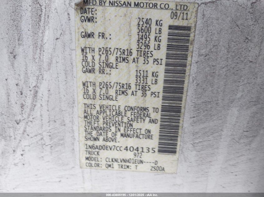 2012 NISSAN FRONTIER S