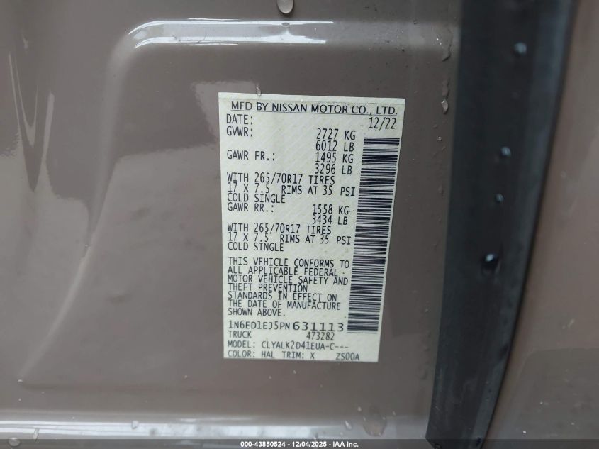 2023 NISSAN FRONTIER 2023 року Бензин, 3.8, , vin - 1N6ED1EJ5PN631113 из США