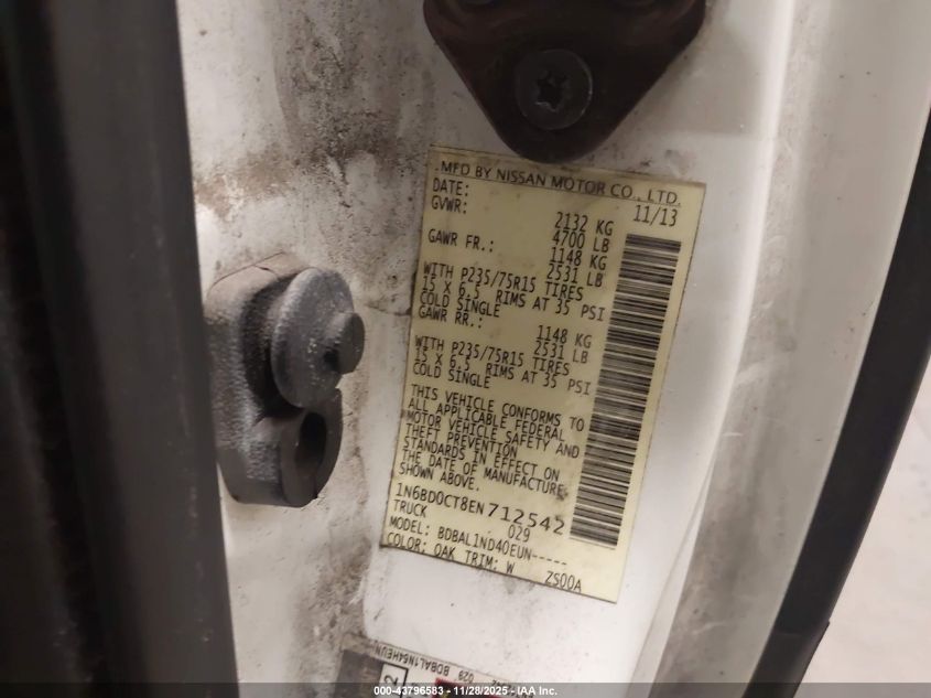 Цвет БелыйЦилиндры 4VIN 1N6BD0CT8EN712542Состояние Заводится и едет (проверено)Повреждения ЗадняяДата аукциона 2025-12-09 AutoRIA