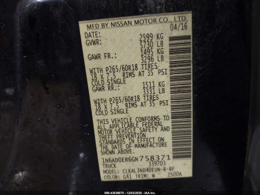 2016 NISSAN FRONTIER 2016 року Бензин, 4.0, , vin - 1N6AD0ER6GN758371 из США