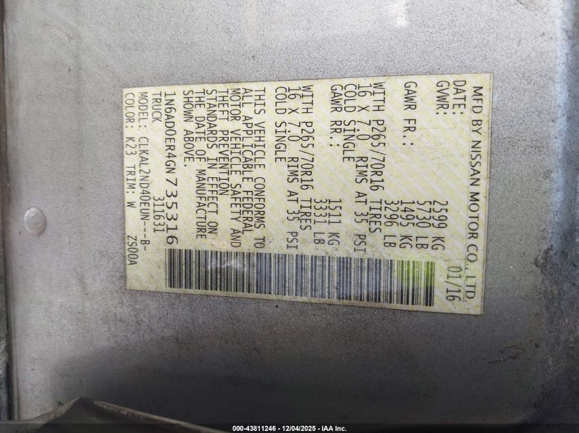 2016 NISSAN FRONTIER S