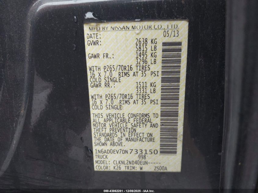 2013 NISSAN FRONTIER 2013 року Бензин, 4.0, Полный привод, vin - 1N6AD0EV7DN733150 из США