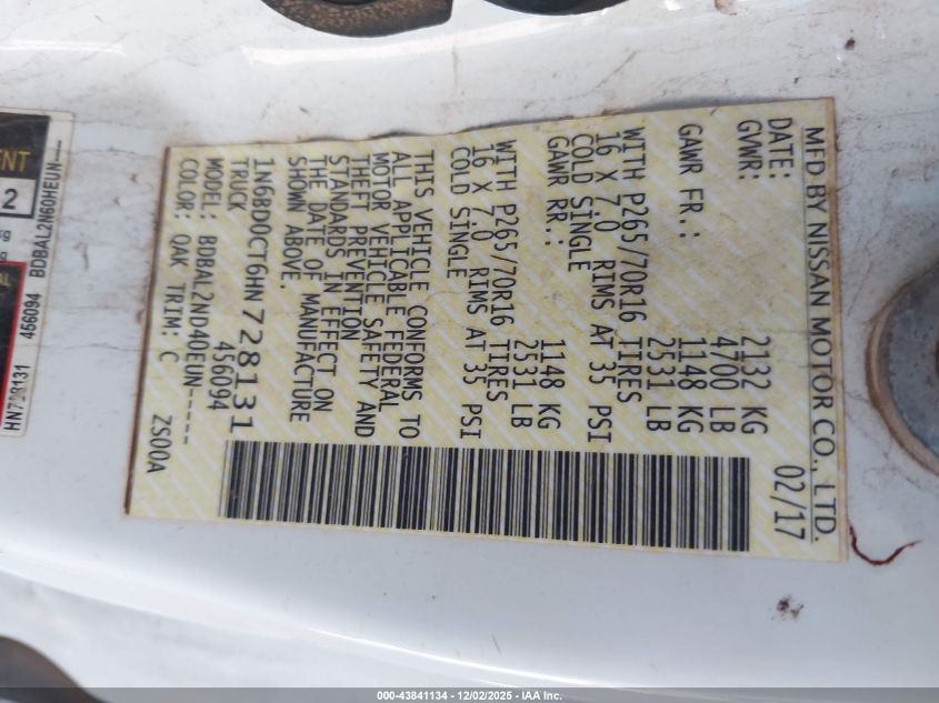 2017 NISSAN FRONTIER 2017 року Бензин, 2.5, , vin - 1N6BD0CT6HN728131 из США