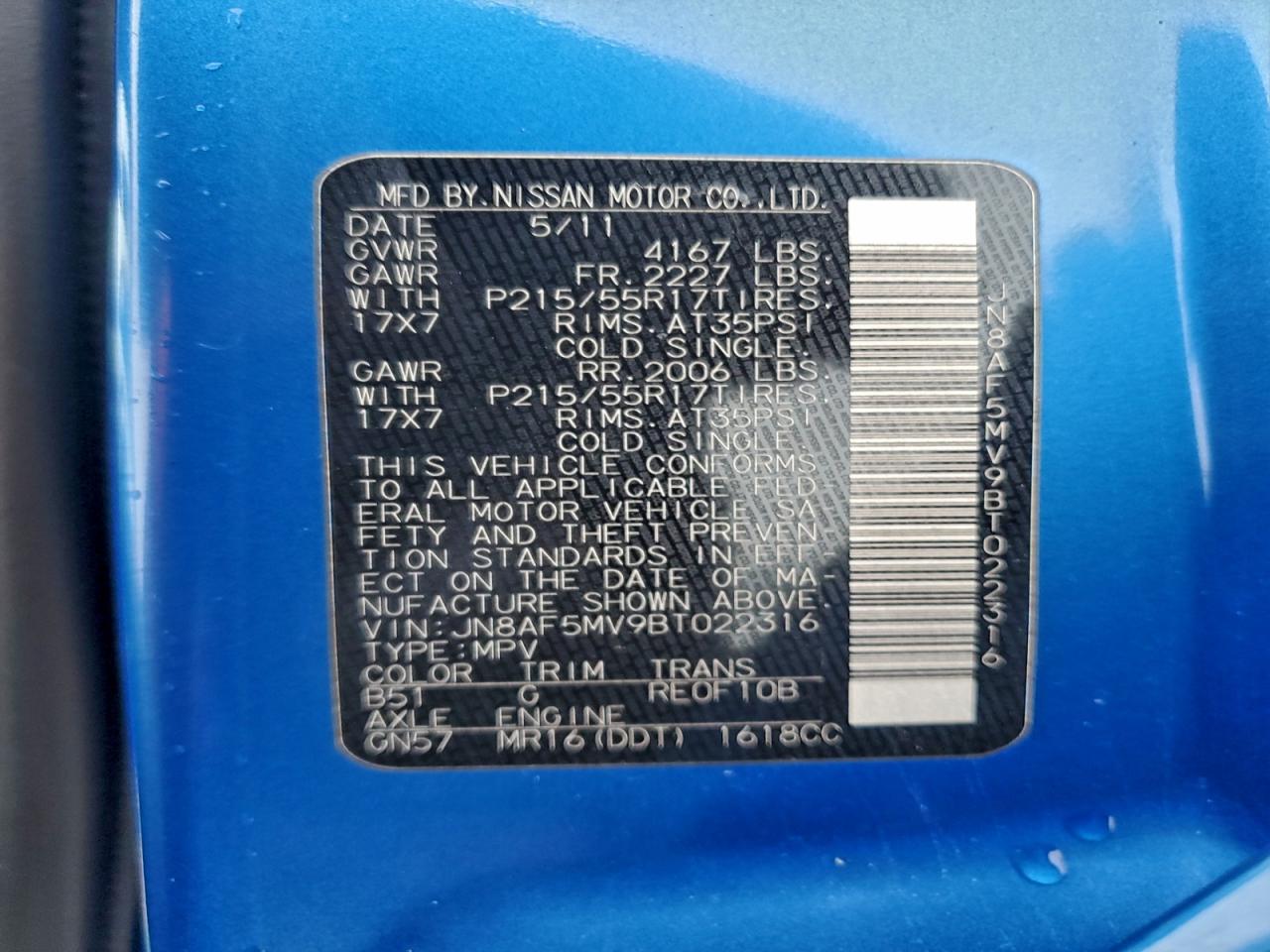 2011 NISSAN JUKE 2011 року Бензин, 1.6, Полный привод, vin - JN8AF5MV9BT022316 из США