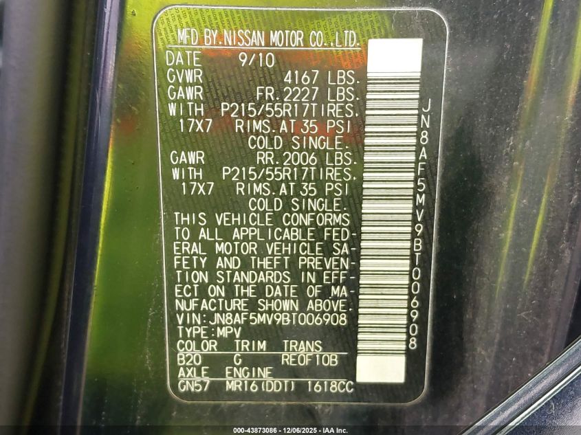 2011 NISSAN JUKE 2011 року Бензин, 1.6, Полный привод, vin - JN8AF5MV9BT006908 из США