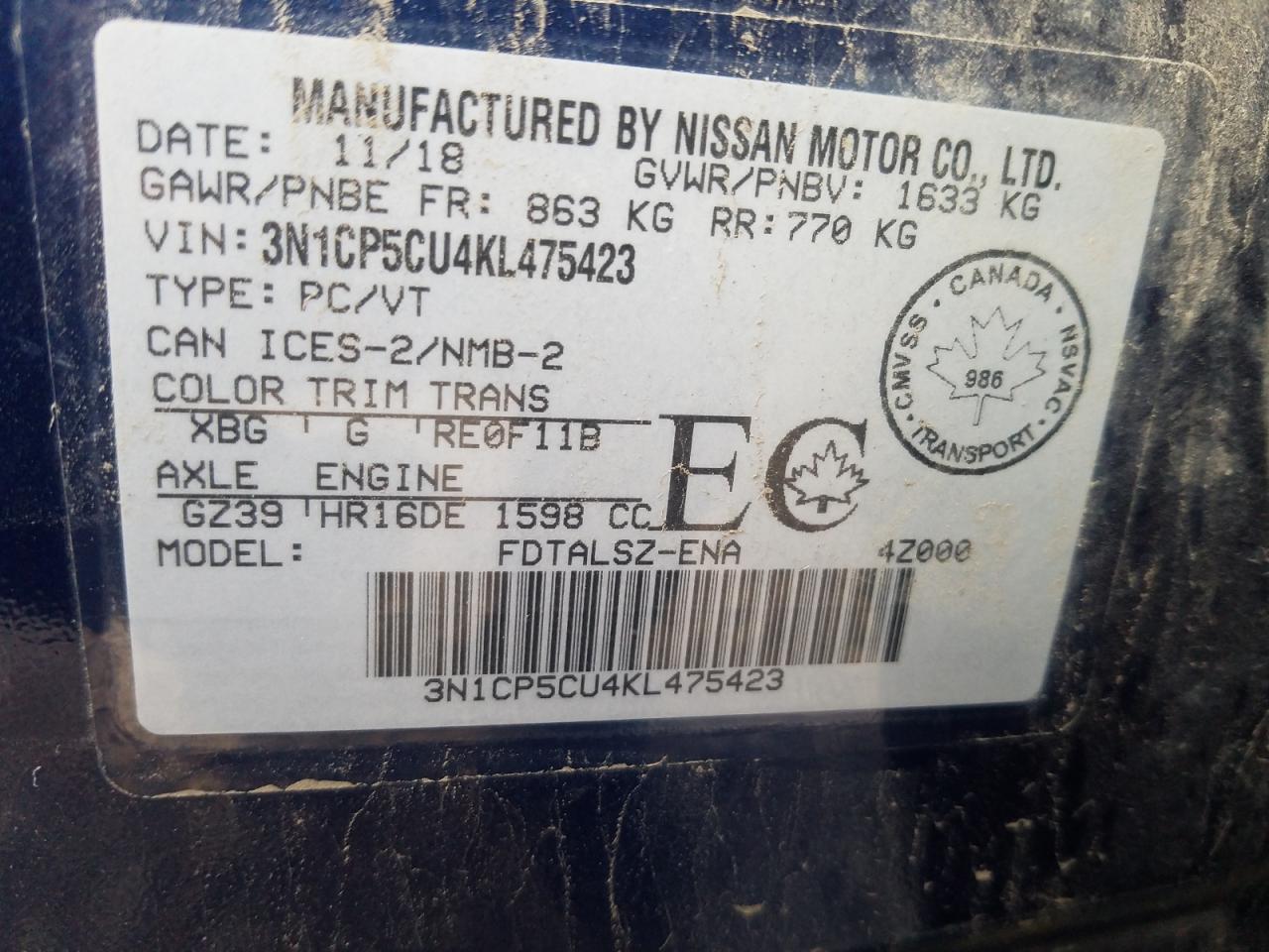 Цвет СинийЦилиндры 4VIN 3N1CP5CU4KL475423Состояние Заводится и едет (проверено)Повреждения Передняя или задняя AutoRIA