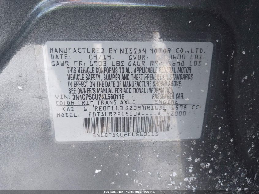 2019 NISSAN KICKS 2019 року Бензин, 1.6, Передний привод, vin - 3N1CP5CU2KL560115 из США