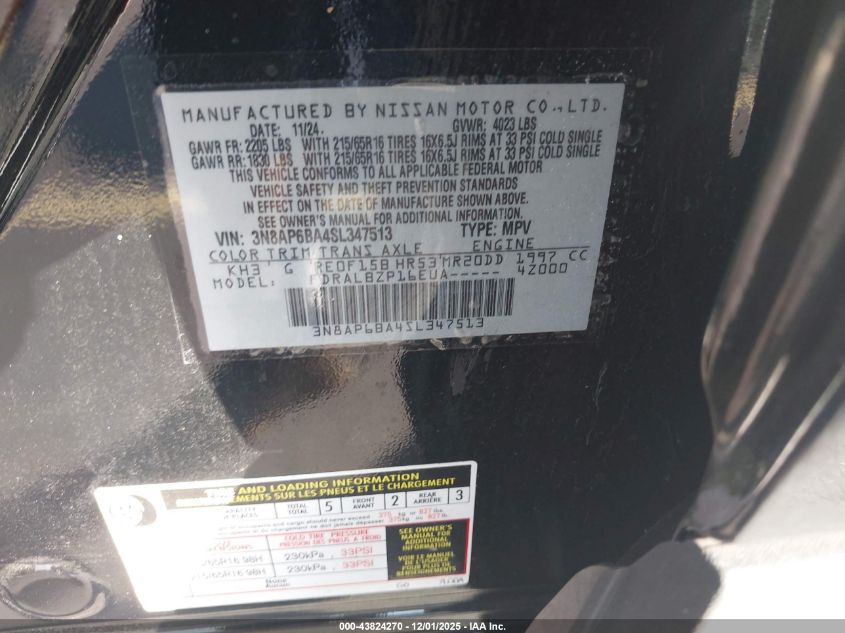 2025 NISSAN KICKS 2025 року Бензин, 2.0, Передний привод, vin - 3N8AP6BA4SL347513 из США