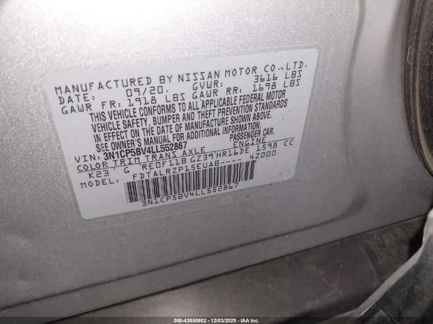 2020 NISSAN KICKS S