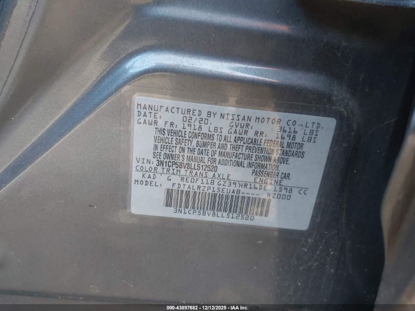 2020 NISSAN KICKS 2020 року Бензин, 1.6, Передний привод, vin - 3N1CP5BV8LL512520 из США