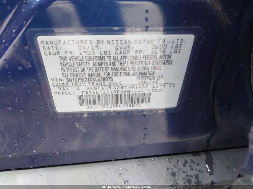 2019 NISSAN KICKS 2019 року Бензин, 1.6, Передний привод, vin - 3N1CP5CUXKL528075 из США