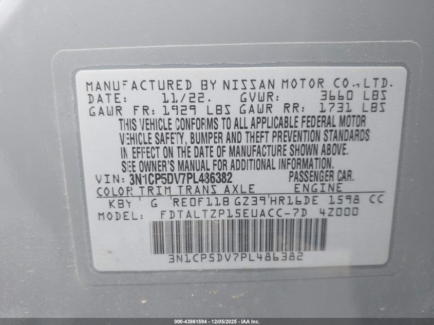 2023 NISSAN KICKS 2023 року Бензин, 1.6, Передний привод, vin - 3N1CP5DV7PL486382 из США