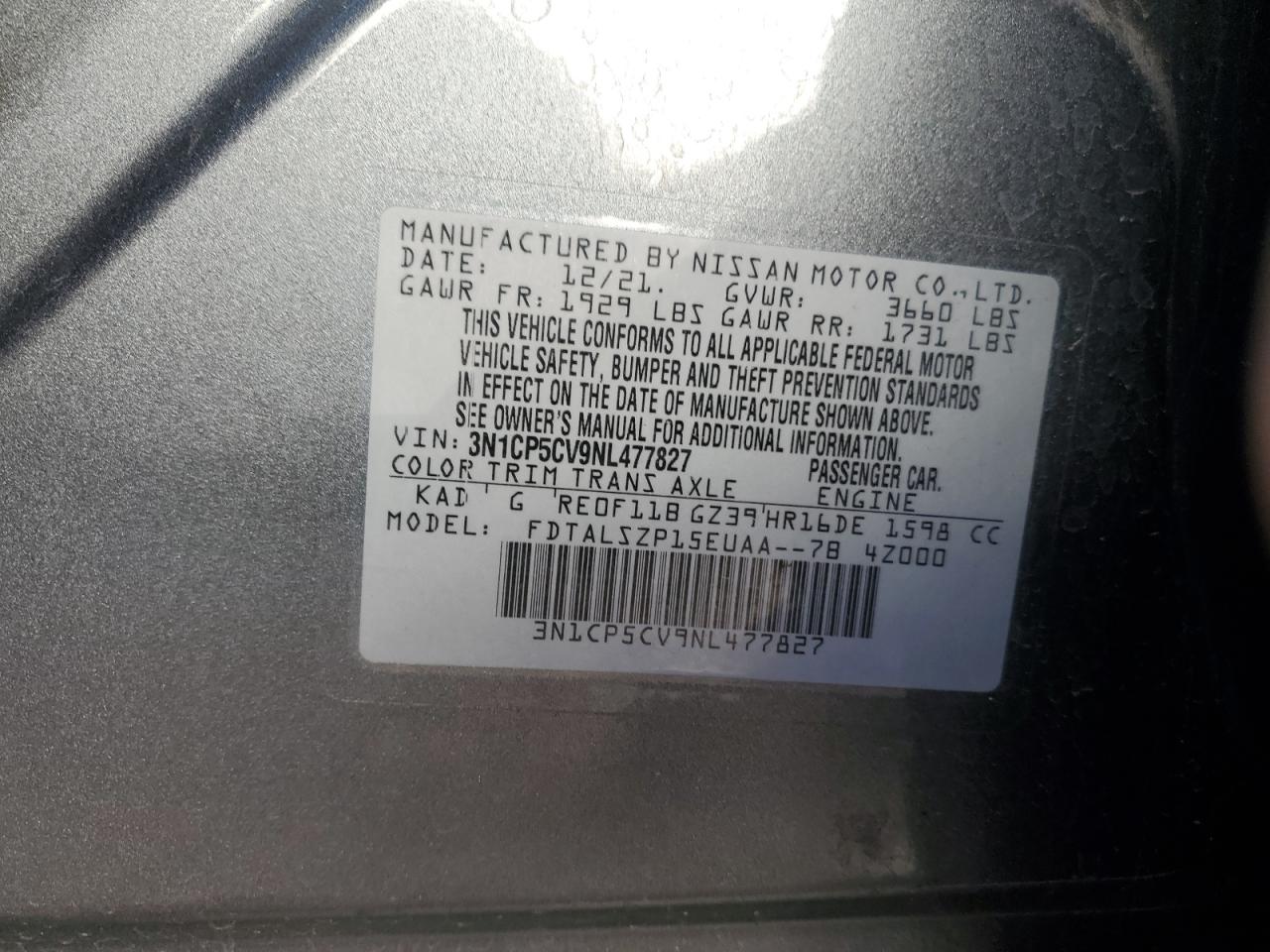 2022 NISSAN KICKS 2022 року Бензин, 1.6, , vin - 3N1CP5CV9NL477827 из США
