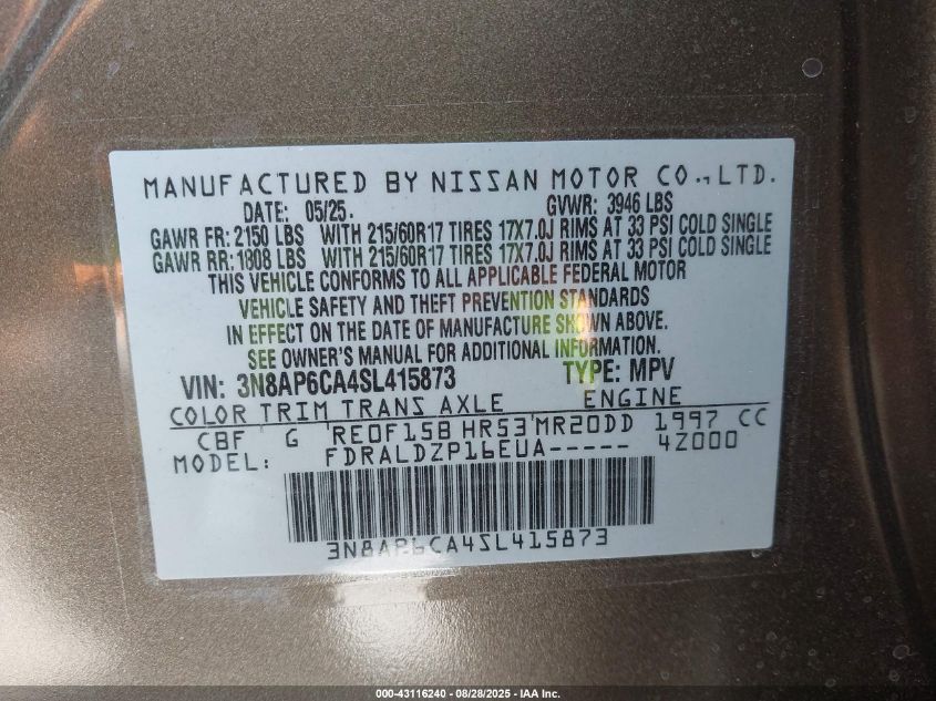 2025 NISSAN KICKS 2025 року Бензин, 2.0, Передний привод, vin - 3N8AP6CA4SL415873 из США