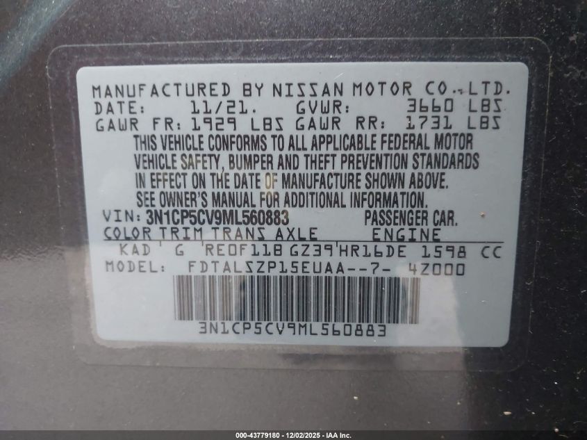 2021 NISSAN KICKS 2021 року Бензин, 1.6, Передний привод, vin - 3N1CP5CV9ML560883 из США