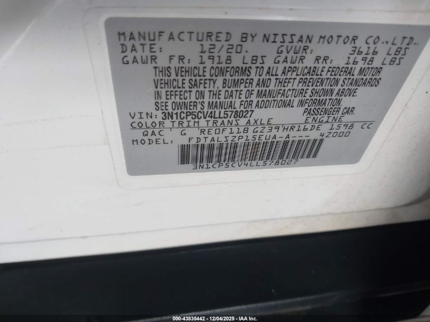 2020 NISSAN KICKS 2020 року Бензин, 1.6, Передний привод, vin - 3N1CP5CV4LL578027 из США