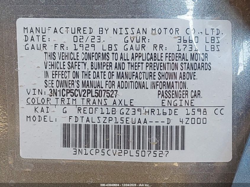 2023 NISSAN KICKS 2023 року Бензин, 1.6, Передний привод, vin - 3N1CP5CV2PL507527 из США