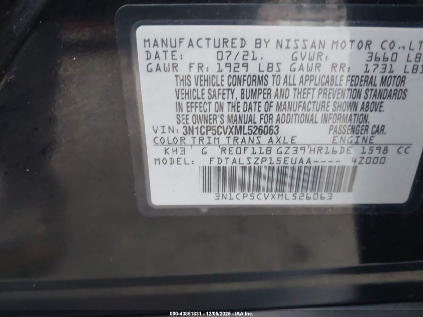 2021 NISSAN KICKS 2021 року Бензин, 1.6, Передний привод, vin - 3N1CP5CVXML526063 из США