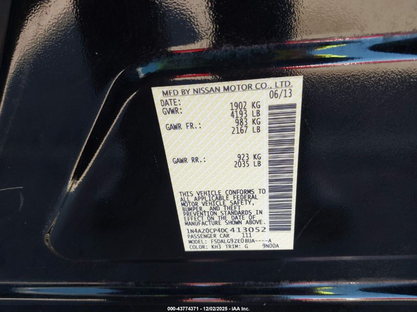 Цвет ЧерныйПривод Передний приводVIN 1N4AZ0CP4DC413052Состояние Заводится и едет (проверено)Повреждения Передняя правая AutoRIA