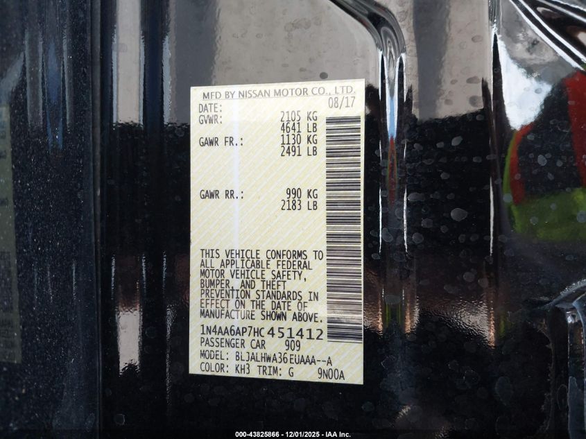 Цвет ЧерныйЦилиндры 6Привод Передний приводVIN 1N4AA6AP7HC451412Состояние СтационарноПовреждения Передняя или задняя AutoRIA