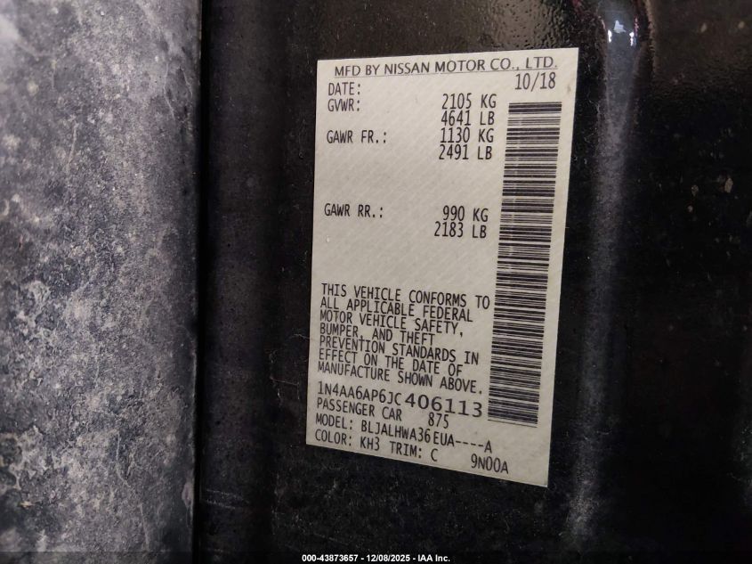 2018 NISSAN MAXIMA 2018 року Бензин, 3.5, Передний привод, vin - 1N4AA6AP6JC406113 из США