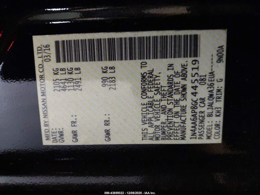 Цвет ЧерныйЦилиндры 6Привод Передний приводVIN 1N4AA6AP8GC445519Состояние СтационарноПовреждения Передняя или задняя AutoRIA