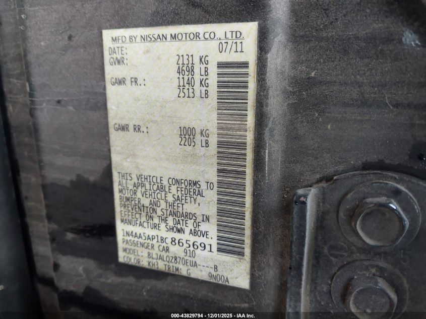 2011 NISSAN MAXIMA 2011 року Бензин, 3.5, Передний привод, vin - 1N4AA5AP1BC865691 из США