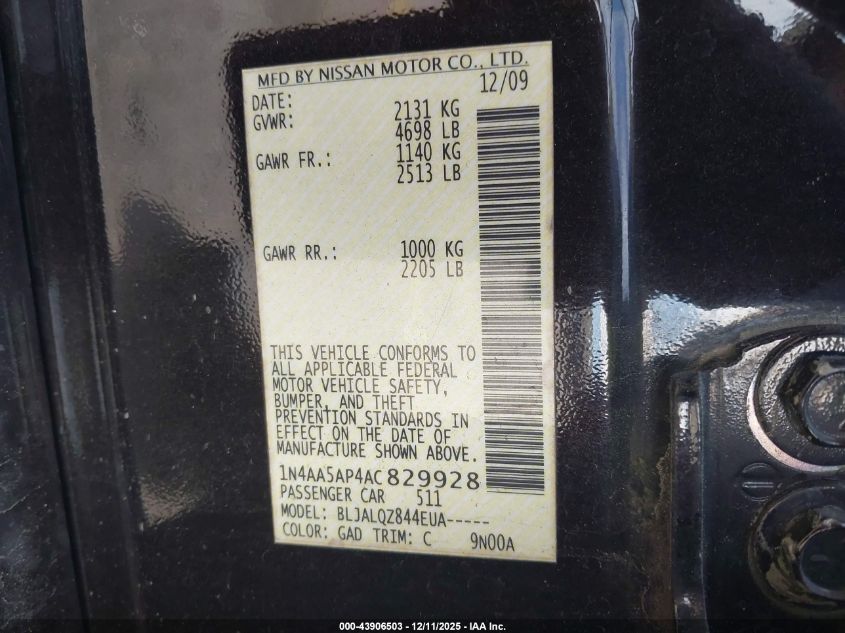 2010 NISSAN MAXIMA 2010 року Бензин, 3.5, Передний привод, vin - 1N4AA5AP4AC829928 из США