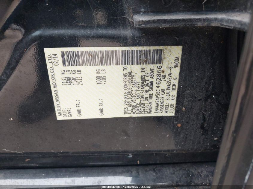 2014 NISSAN MAXIMA 2014 року Бензин, 3.5, Передний привод, vin - 1N4AA5AP5EC462866 из США