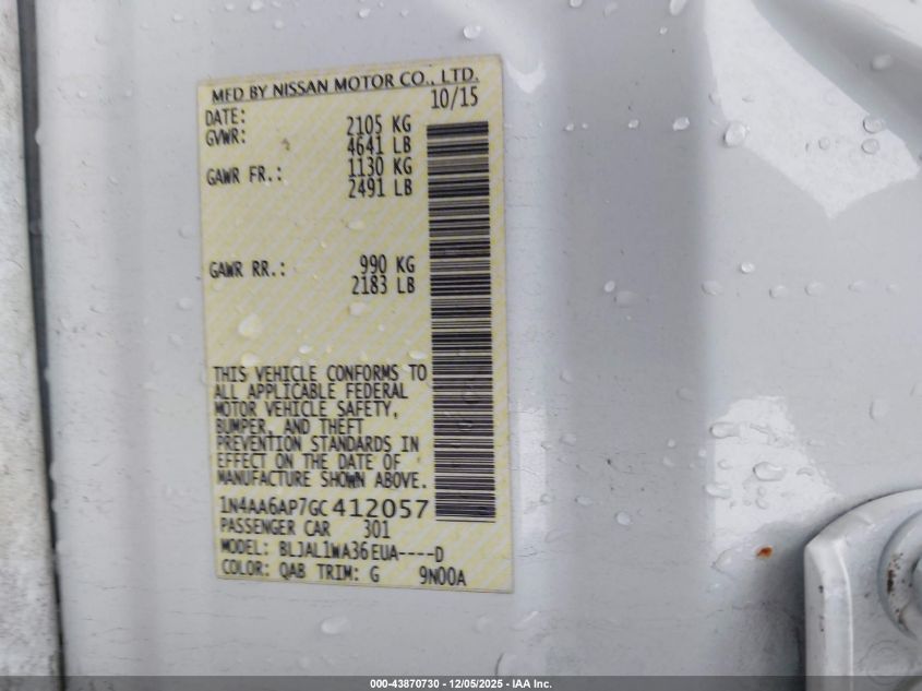 Цвет БелыйЦилиндры 6Привод Передний приводVIN 1N4AA6AP7GC412057Состояние Заводится и едет (проверено)Повреждения Передняя или задняя AutoRIA