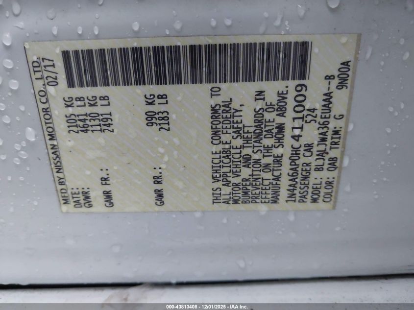 2017 NISSAN MAXIMA 2017 року Бензин, 3.5, Передний привод, vin - 1N4AA6AP0HC411009 из США