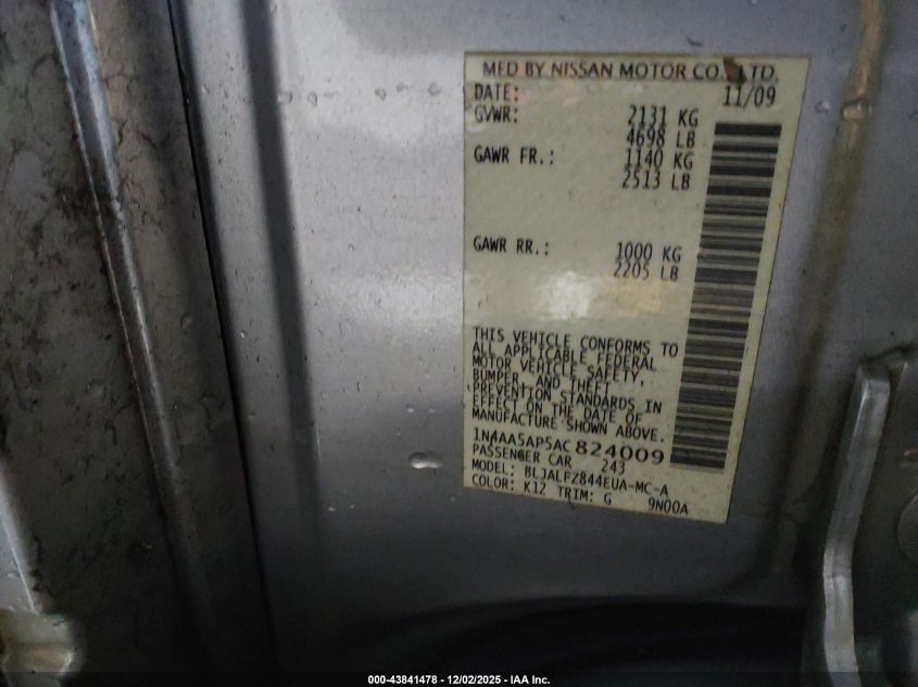 Цвет СеребряныйЦилиндры 6Привод Передний приводVIN 1N4AA5AP5AC824009Состояние СтационарноПовреждения Обычный износ AutoRIA