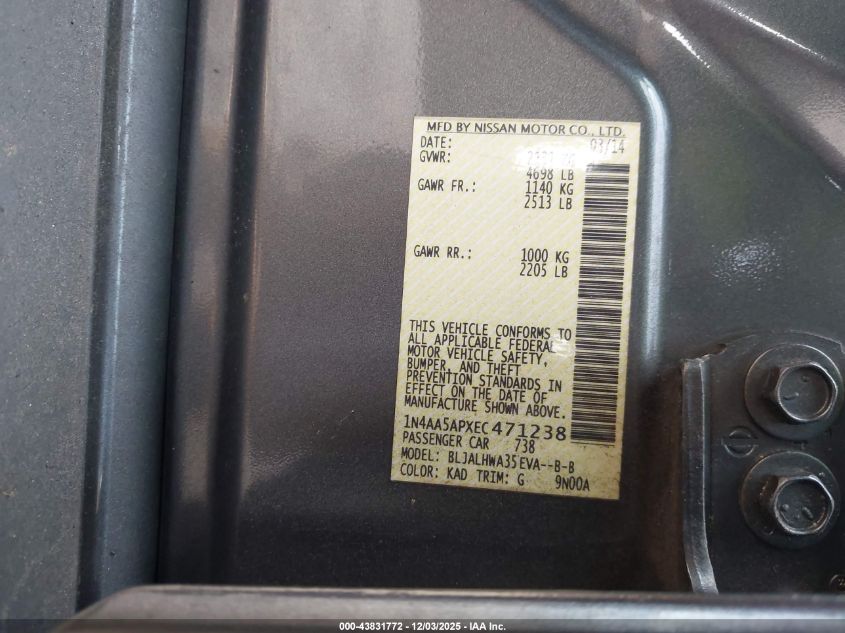 2014 NISSAN MAXIMA 2014 року Бензин, 3.5, Передний привод, vin - 1N4AA5APXEC471238 из США