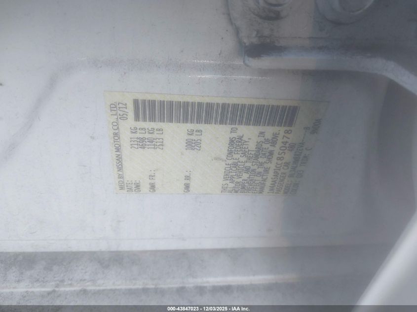2012 NISSAN MAXIMA 2012 року Бензин, 3.5, Передний привод, vin - 1N4AA5AP1CC850478 из США
