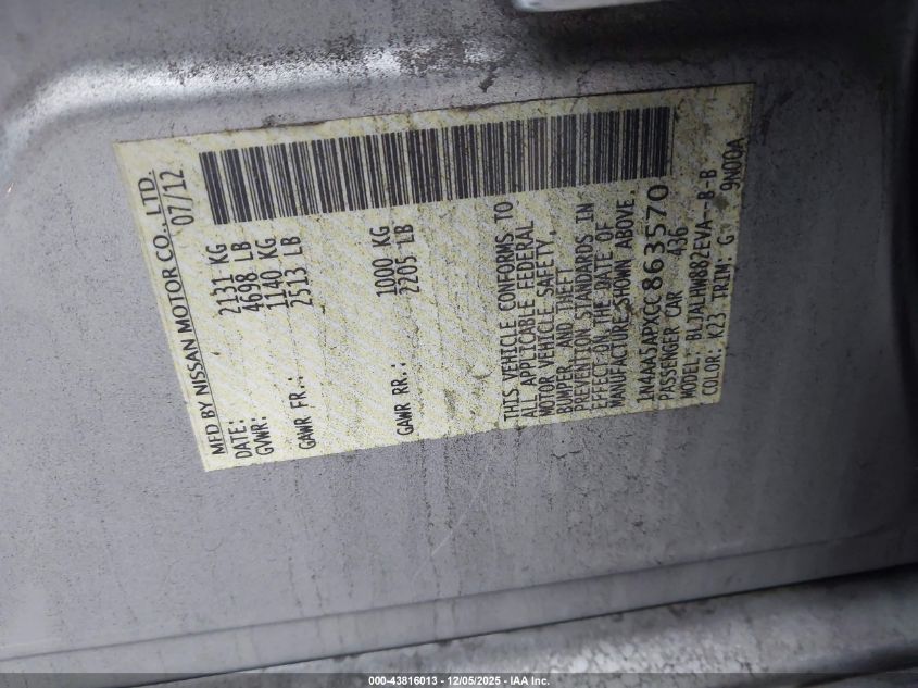 2012 NISSAN MAXIMA 2012 року Бензин, 3.5, Передний привод, vin - 1N4AA5APXCC863570 из США