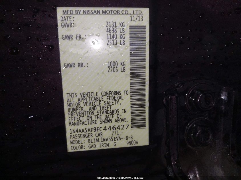 2014 NISSAN MAXIMA 2014 року Бензин, 3.5, Передний привод, vin - 1N4AA5AP9EC446427 из США