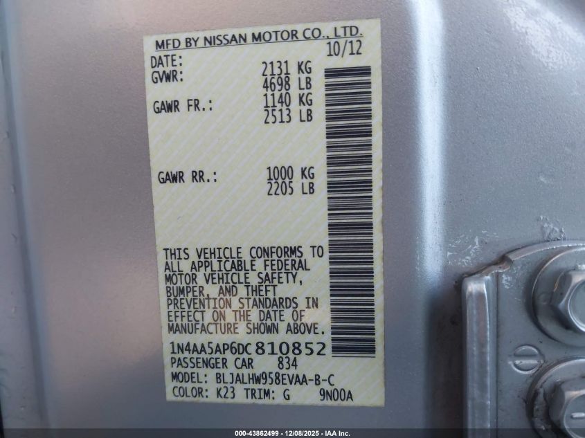 Цвет СеребряныйЦилиндры 6Привод Передний приводVIN 1N4AA5AP6DC810852Состояние Заводится и едет (проверено)Повреждения Передняя или задняя AutoRIA