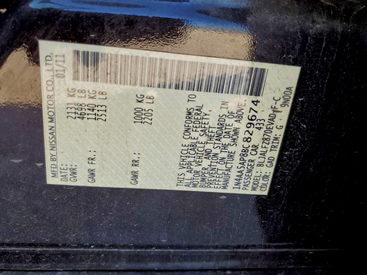 2011 NISSAN MAXIMA 2011 року Бензин, 3.5, , vin - 1N4AA5AP8BC829674 из США