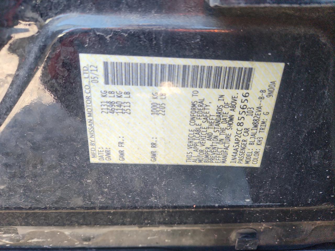 Цвет ЧерныйЦилиндры 6VIN 1N4AA5AP2CC855656Состояние НеизвестноПовреждения Передняя или задняя